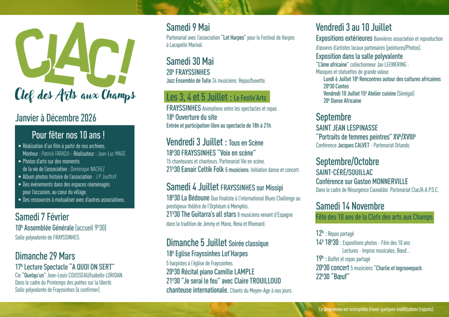 Clef des Arts aux Champs siège social : Mairie 1 place du Barry 46400 Frayssinhes