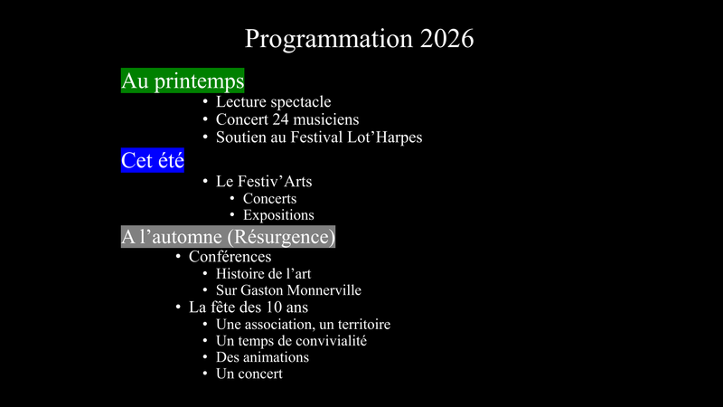 Clef des Arts aux Champs siège social : Mairie 1 place du Barry 46400 Frayssinhes