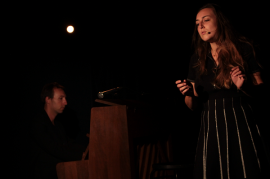 Il ne s’agit pas d’un spectacle sur Barbara mais d’un spectacle d’après les chansons de Barbara. Il y a des solos, des duos, des moments a cappella… Les deux personnages-musiciens n’ont pas de nom : c’est ELLE et LUI, leurs émotions sont universelles, elles sont vécues par tous, comme Barbara les a vécues avant eux. Le spectacle sera néanmoins un hommage à Barbara : il est construit uniquement avec ses chansons. Presque… La dernière, Barbara, est de Prévert et Kosma. A travers une image scénique chargée d’émotion, où l’image de Barbara se mêle à celle de cette femme, d’ELLE et même de toutes les femmes, il s’agira de rendre hommage à cette grande dame du piano, du chant, de la musique. Cette femme Barbara s’avère être un souvenir à LUI, son passé – à l’époque où ils répétaient ensemble – ou bien était-ce seulement le rêve de cet homme. « Rappelle-toi », qui se répète tout au long de cette dernière chanson, traduit le souvenir de cet homme, le souvenir d’ELLE, de Barbara, presque un appel à la nostalgie du public également ; pour finir avec cette dernière phrase, une fin inattendue, qui clôturera le spectacle « Dont il ne reste rien » : Tout est dit, le souvenir s’en est allé.
